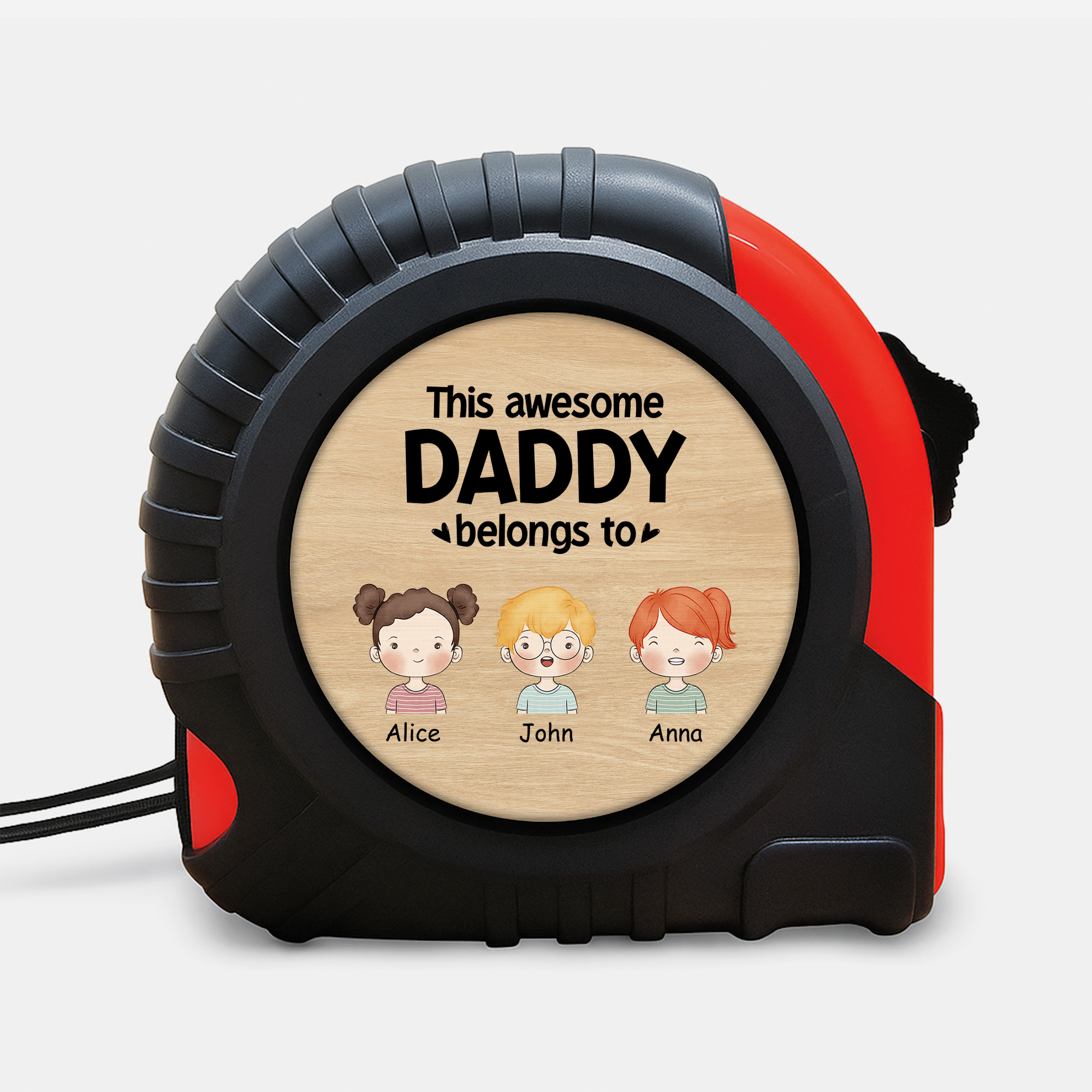 This personalized measuring tape for Dad combines everyday practicality with personal sentiment. Customize it with children’s names and illustrated characters that resemble Dad and his kids — from hair color and style to clothing and accessories. Made from high-quality, durable materials with a precise, easy-to-read scale, it’s a keepsake he’ll actually use. Perfect for Father’s Day, birthdays, Christmas, or just to remind him how special he is, this thoughtful dad tape measure blends utility and love in one handy tool.