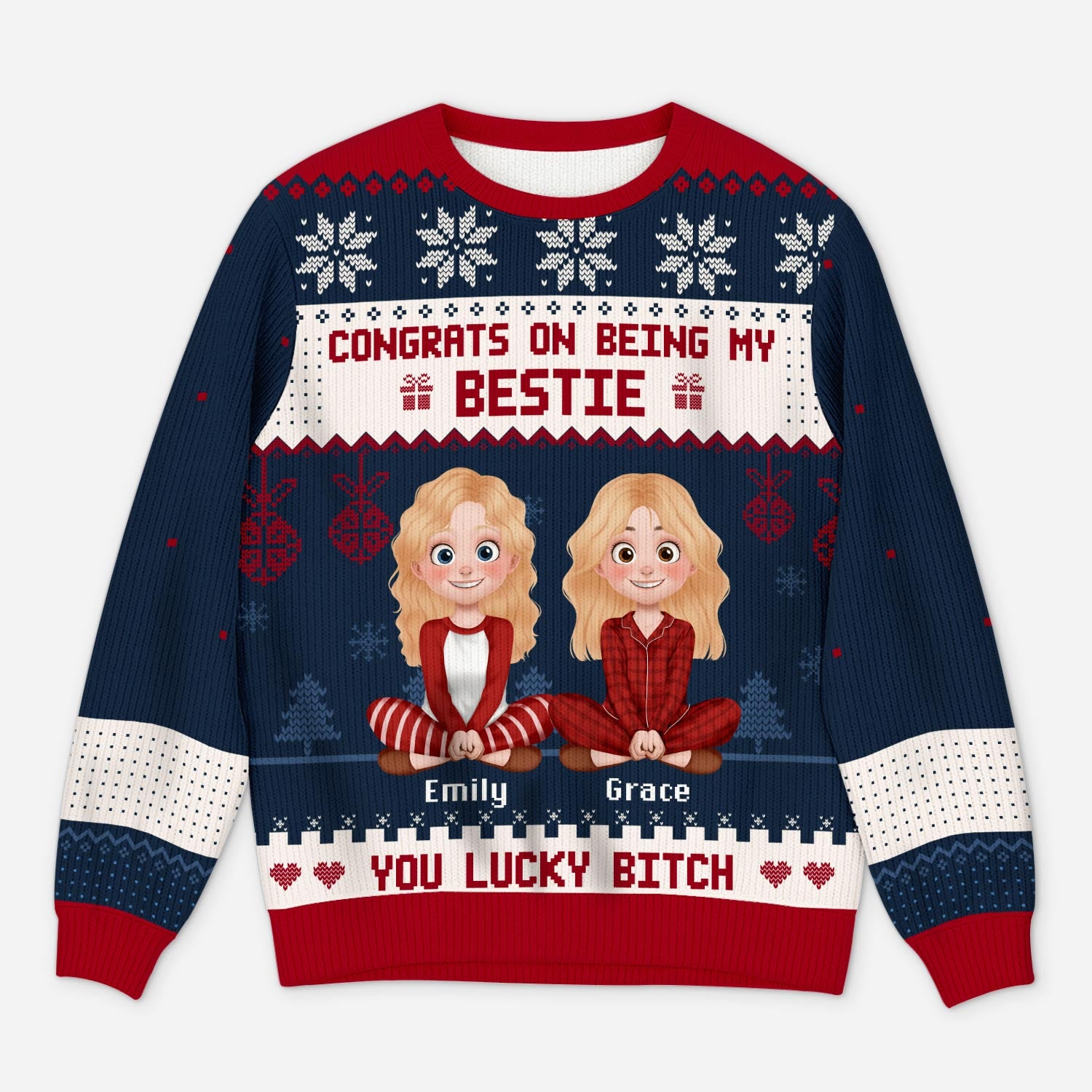 Personalized Ugly Christmas Sweater - Congrats On Being My Bestie