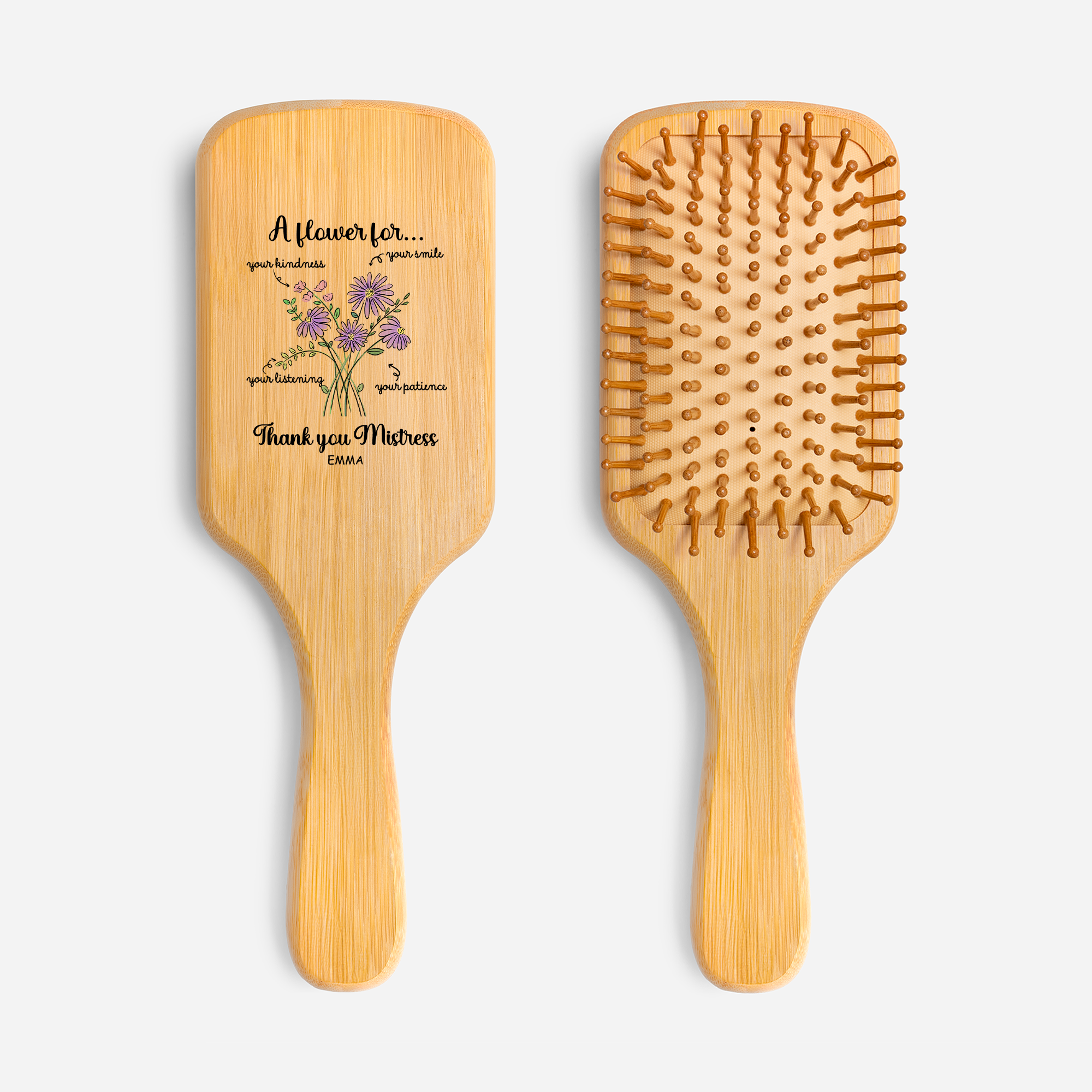 Personalized UV Printed Bamboo Hairbrush - Thank You Gifts for Teacher