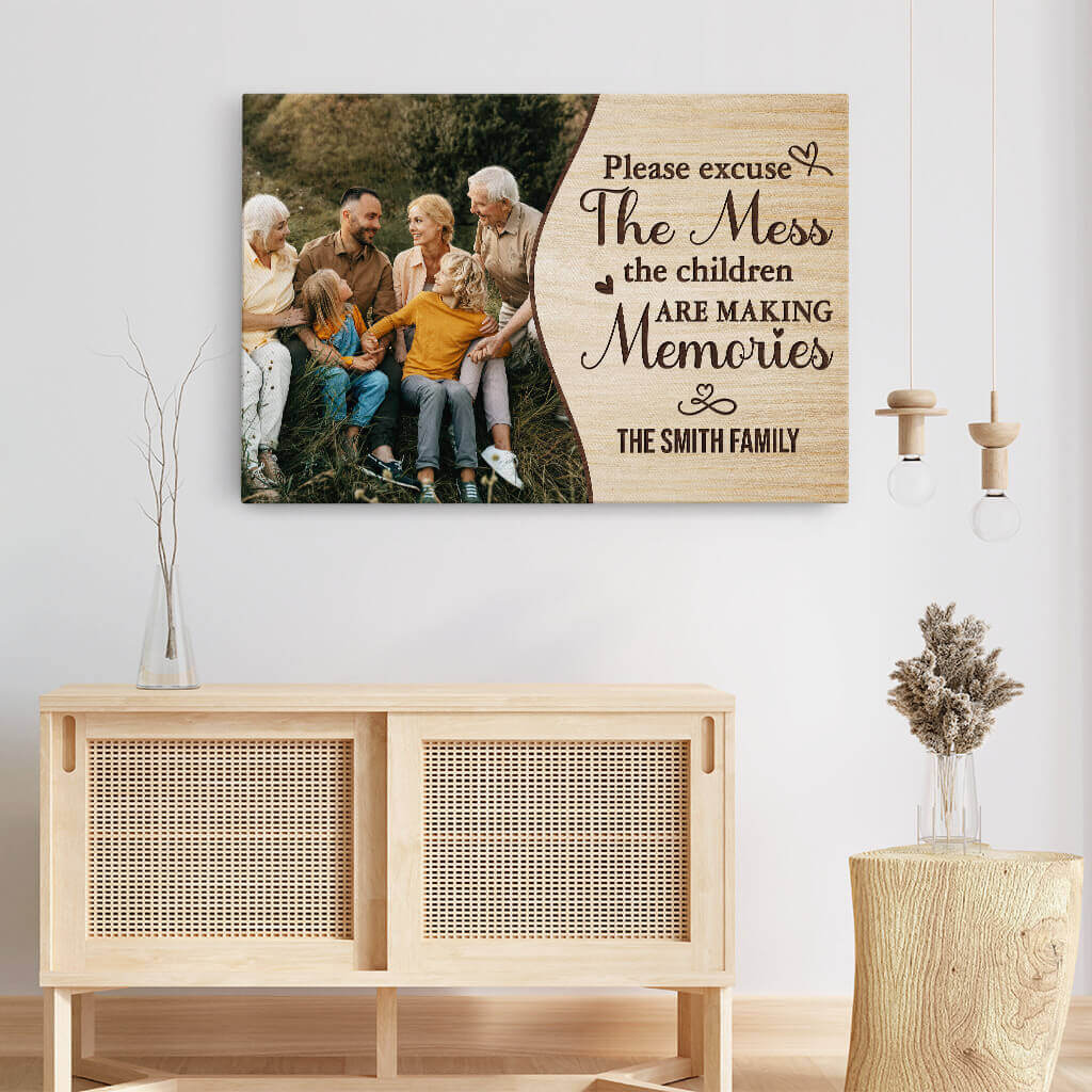 Please Excuse The Mess, The Children Are Making Memories - Personalized Canvas For Family