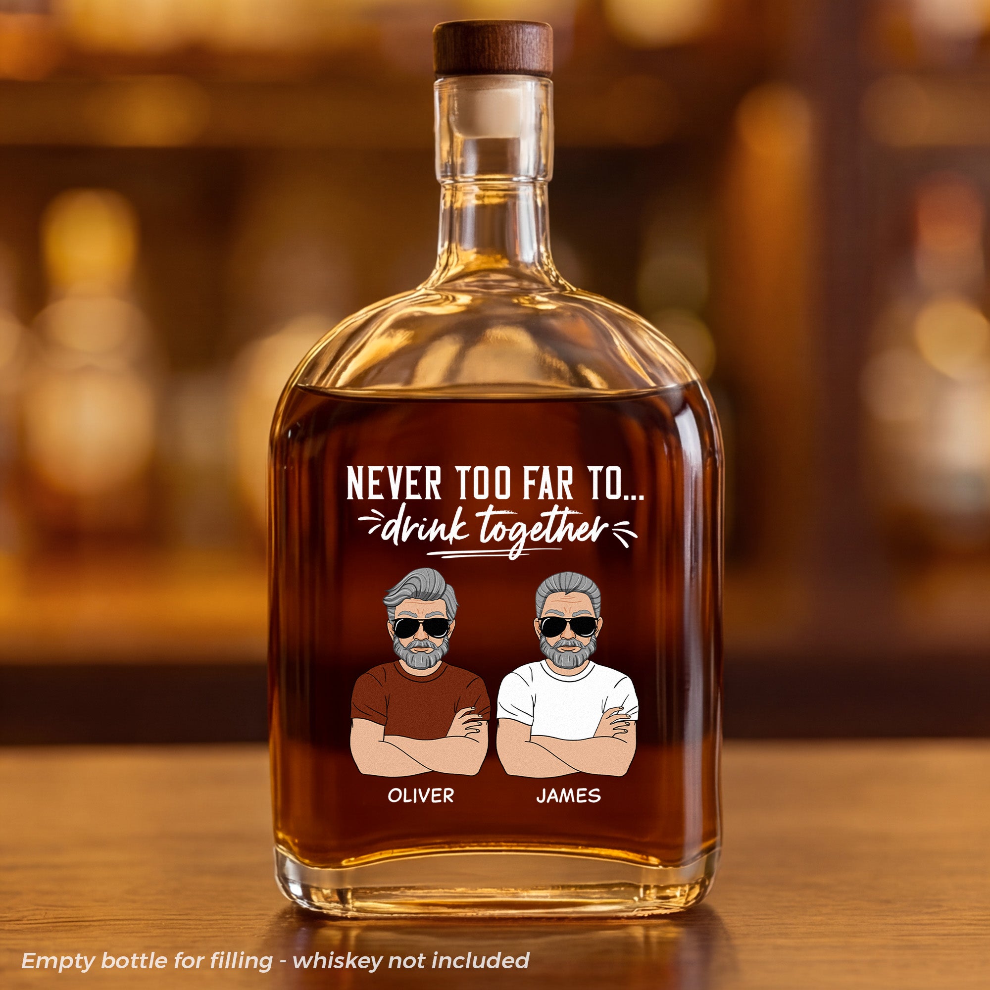 - Personalized Whiskey Bottle: This stylish whiskey bottle can be fully personalized with your own design, text, or artwork. You can add names or custom messages, making each bottle truly one-of-a-kind and a fun, sentimental addition to any bar or home collection.