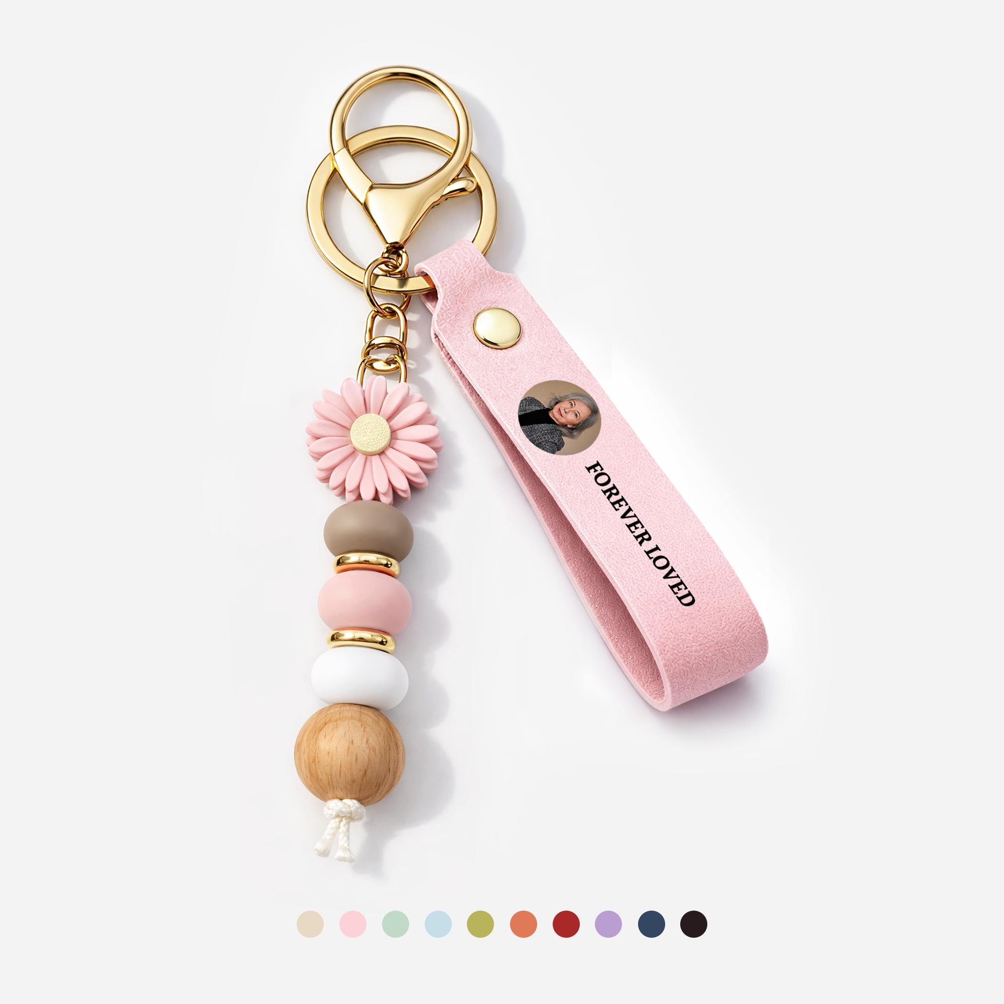 UV-Printed Daisy Beaded Keychain - Personalized Photo Memorial Gifts