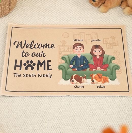 This personalized dog doormat is more than a household accessory—it’s a reflection of the love shared between a couple and their furry family member. Customize the illustration with your names, your dog’s breed and fur color, and matching character designs for both partners to capture your real-life look. Made from premium, non-slip materials that withstand outdoor use, it keeps your entryway clean while adding a heartfelt, personal touch. It’s an ideal gift for couples with dogs celebrating a new home, anniversary, or Christmas.